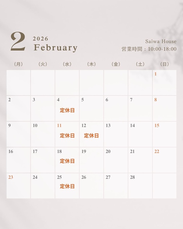 2026年2月 営業日のお知らせ